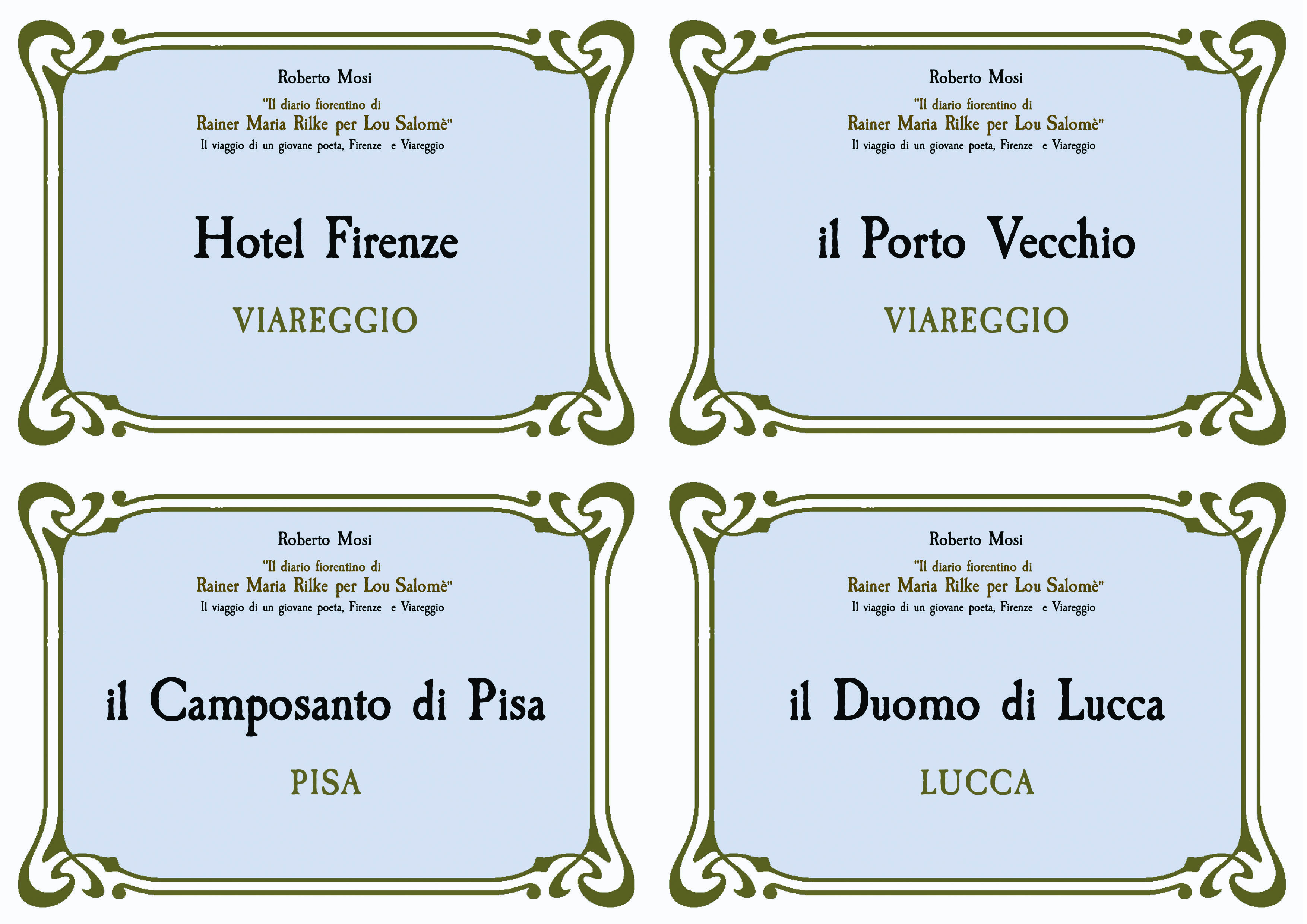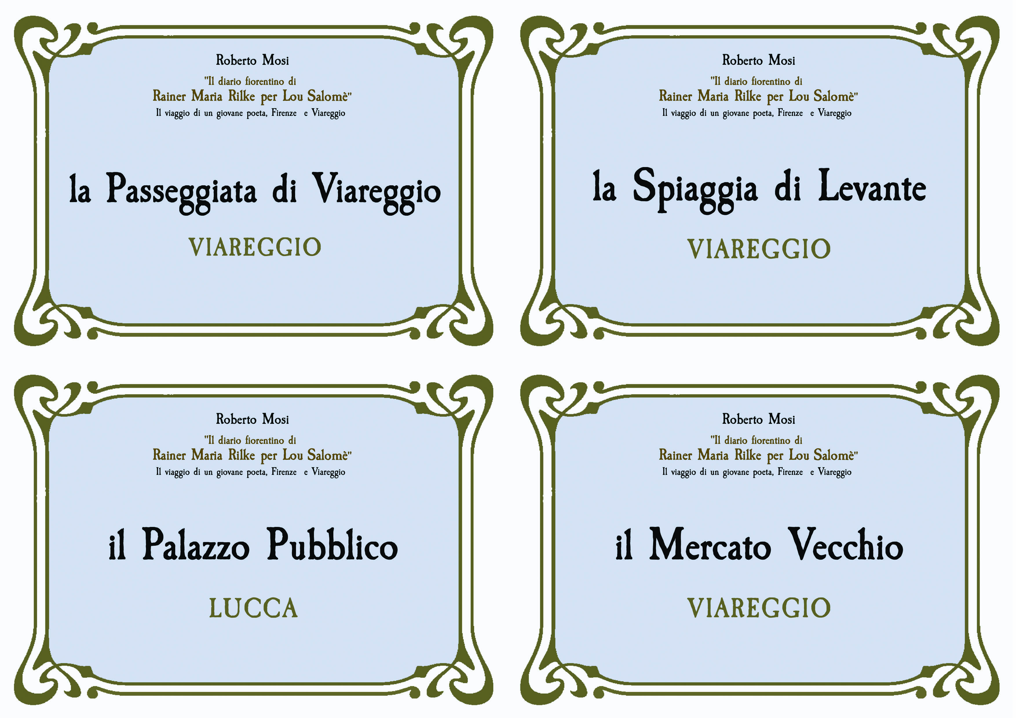 A Viareggio, una sosta in piazza Santa Caterina dove era l’hotel Firenze, nella villa Rigutti, prima che venisse demolita per la nuova urbanizzazione dell’area: qui soggiornò Rilke e compose il primo nucleo dell’opera “La principessa bianca” (cap. XII Il mare; Diario pp. 191 e succ.).