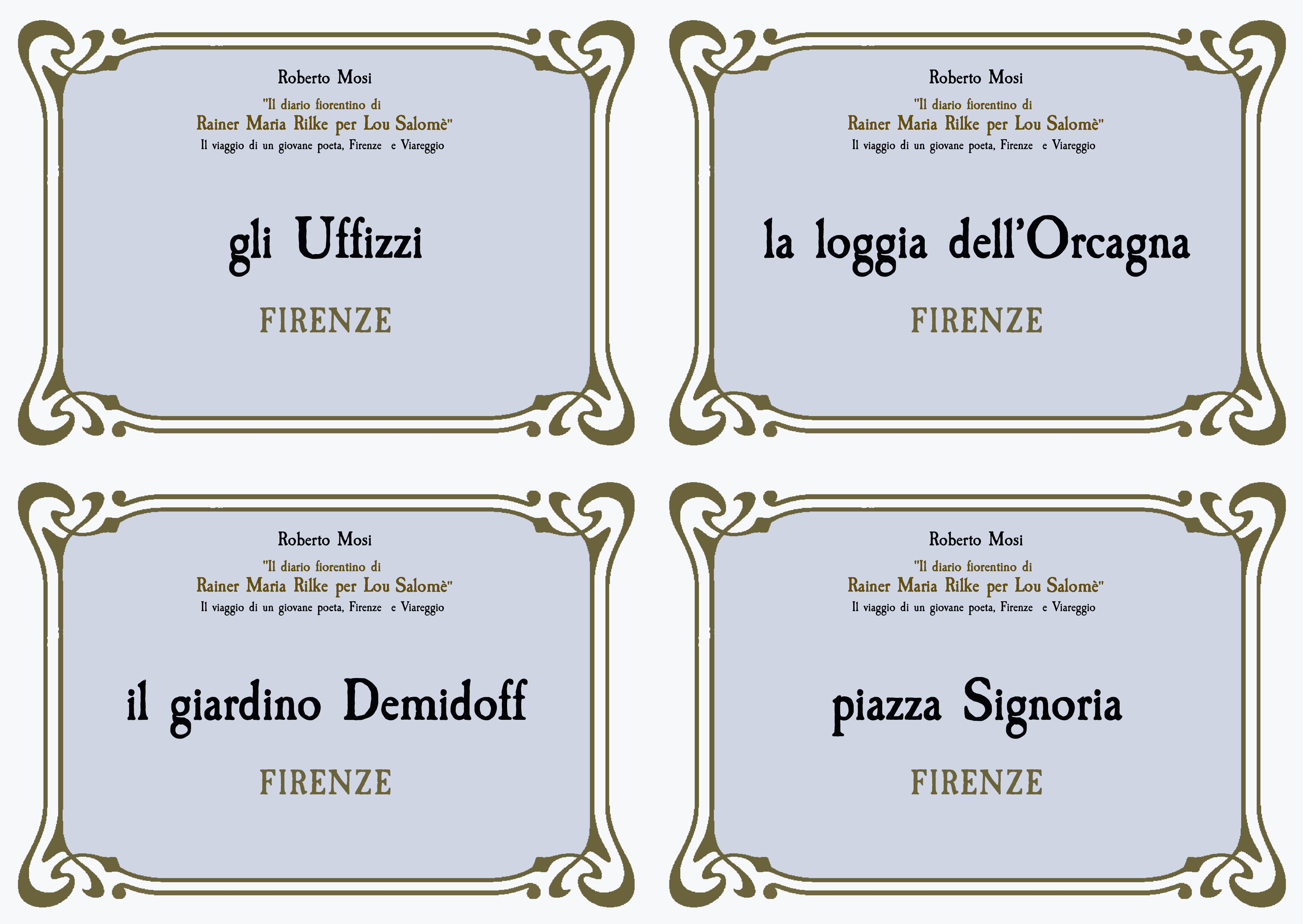 Si parte dal giardino Demidoff sul lungarno Serristori, situato a fianco del palazzetto, al n. 25, presso il Ponte alle Grazie, dove il 15 aprile 1898 arrivò Rainer Maria Rilke; vi soggiornò per tre settimane nell’appartamento aperto su un’ampia terrazza, al terzo piano. La lapide, un po’ annerita sopra il portone, ricorda la circostanza. Nel giardino sarà posto un cartello informativo con la mappa del sentiero e le indicazioni per collegarsi alla piattaforma digitale.