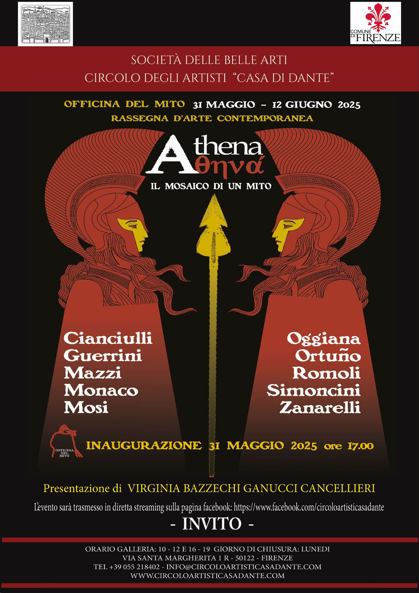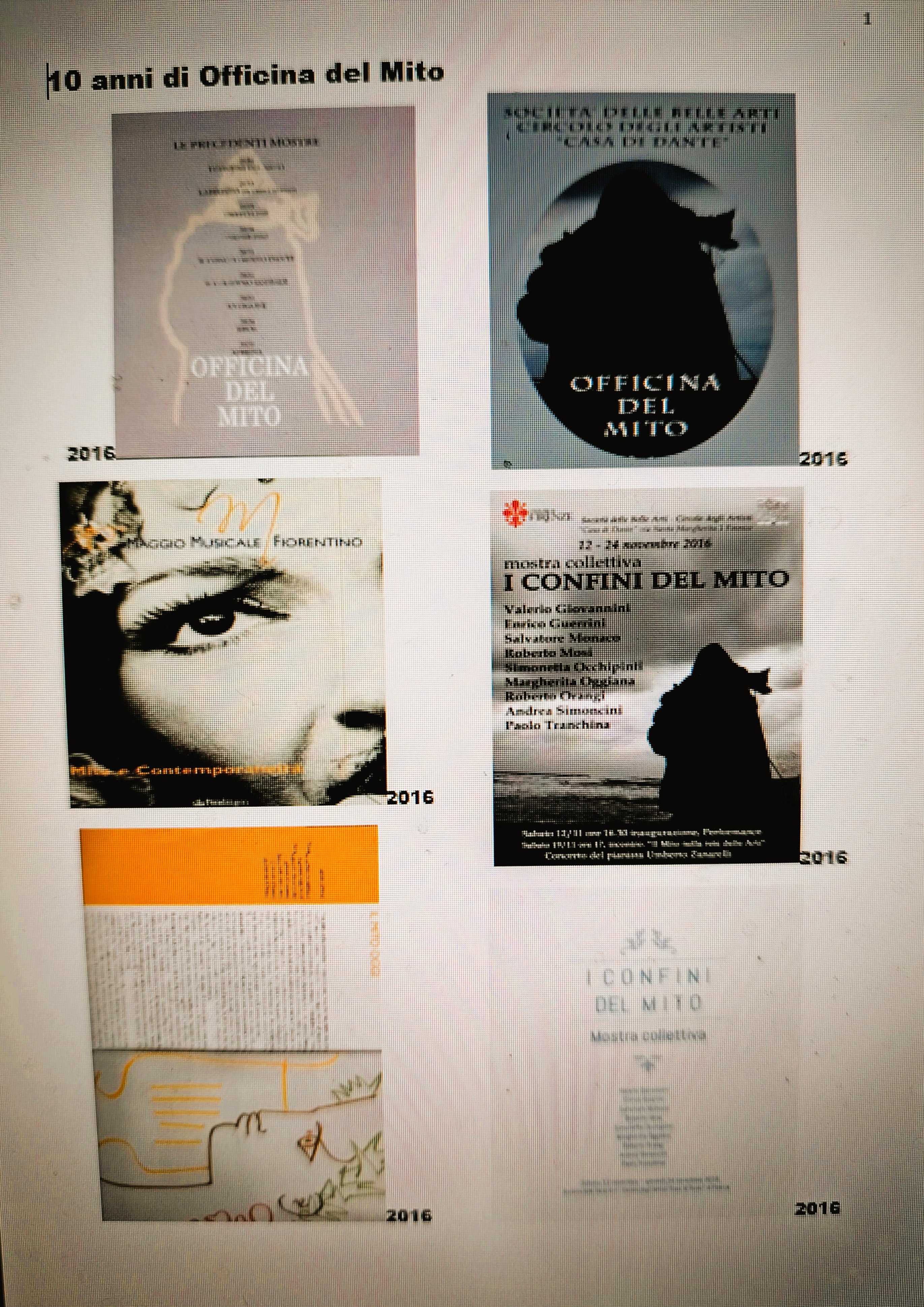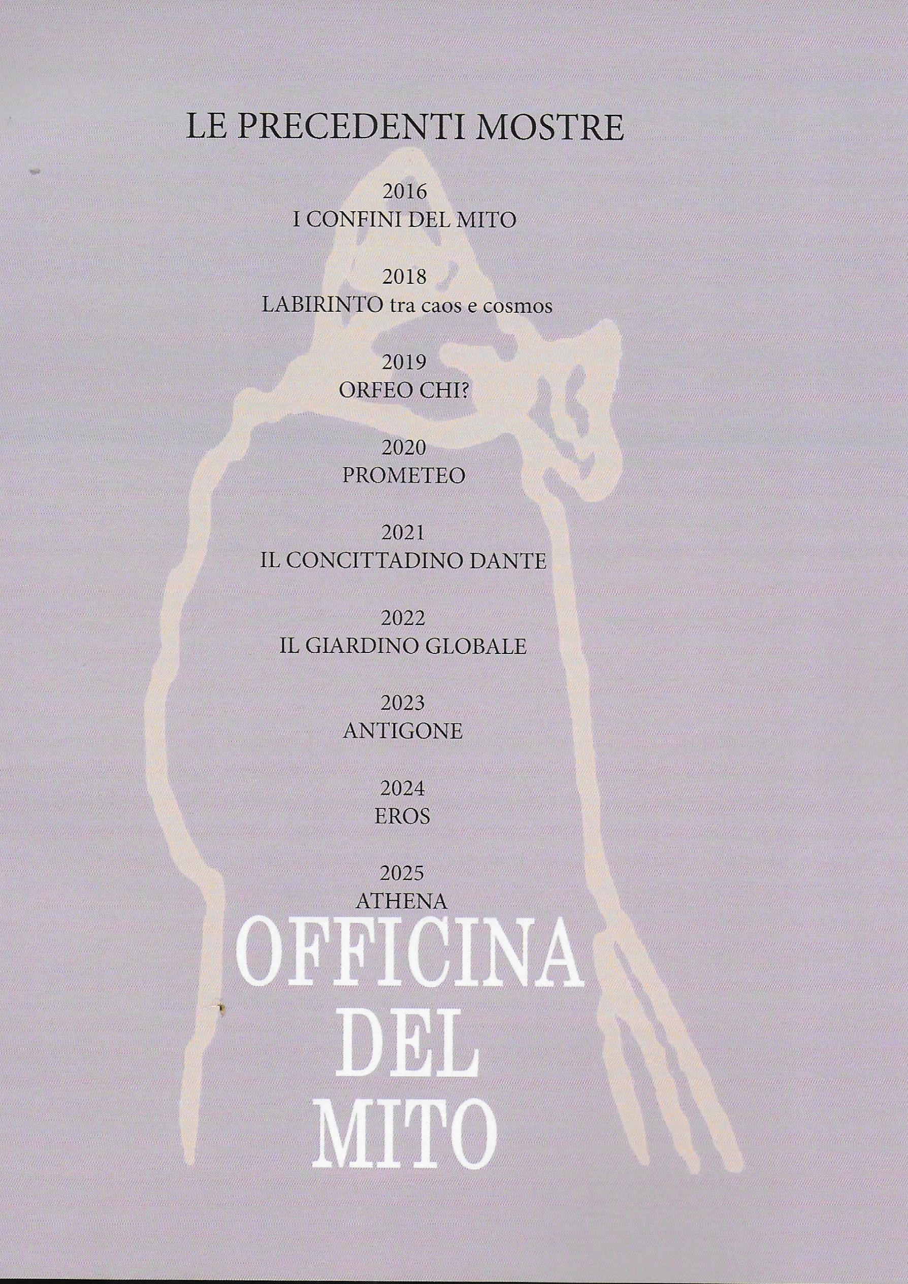 Ringraziamo l’OFFICINA DEL MITO per l’apporto culturale insito nell’alleanza “fenomenologica” tra l’Arte e le valenze sublimatrici del Mito quale scrigno di verità primigenie universali, nel dialogo tra passato e presente secondo rinnovate Iconografie ad opera dei singoli artefici: speculazione ispirativa, prassi stilistica ed atti ermeneutici delle rappresentazioni paradigmatiche.